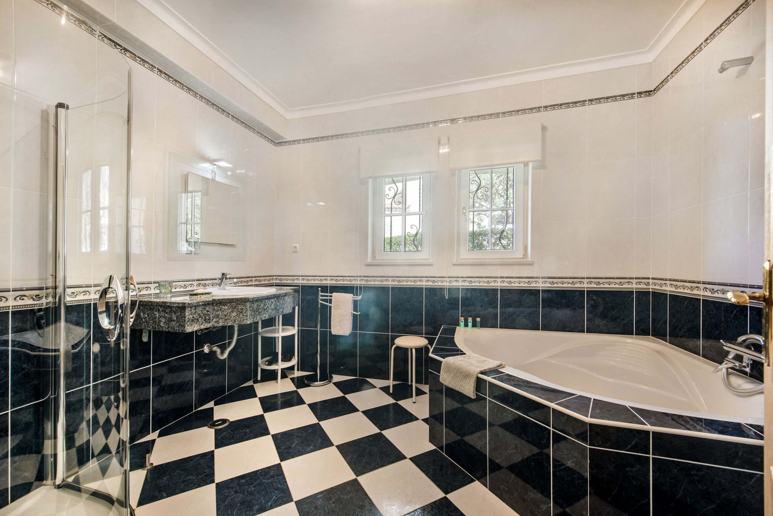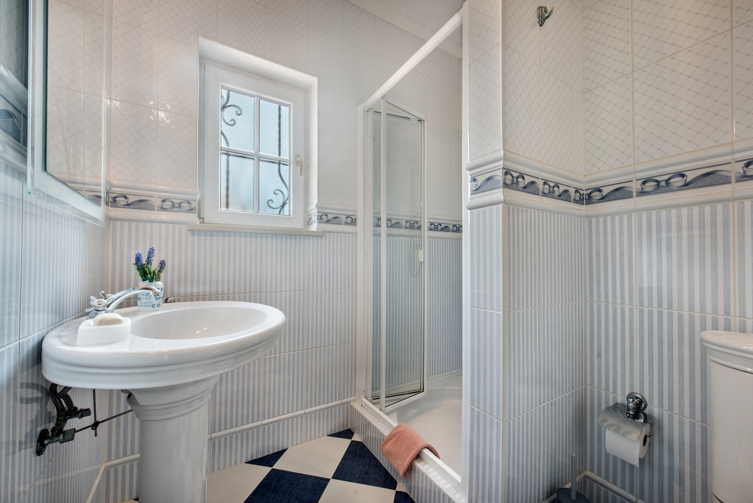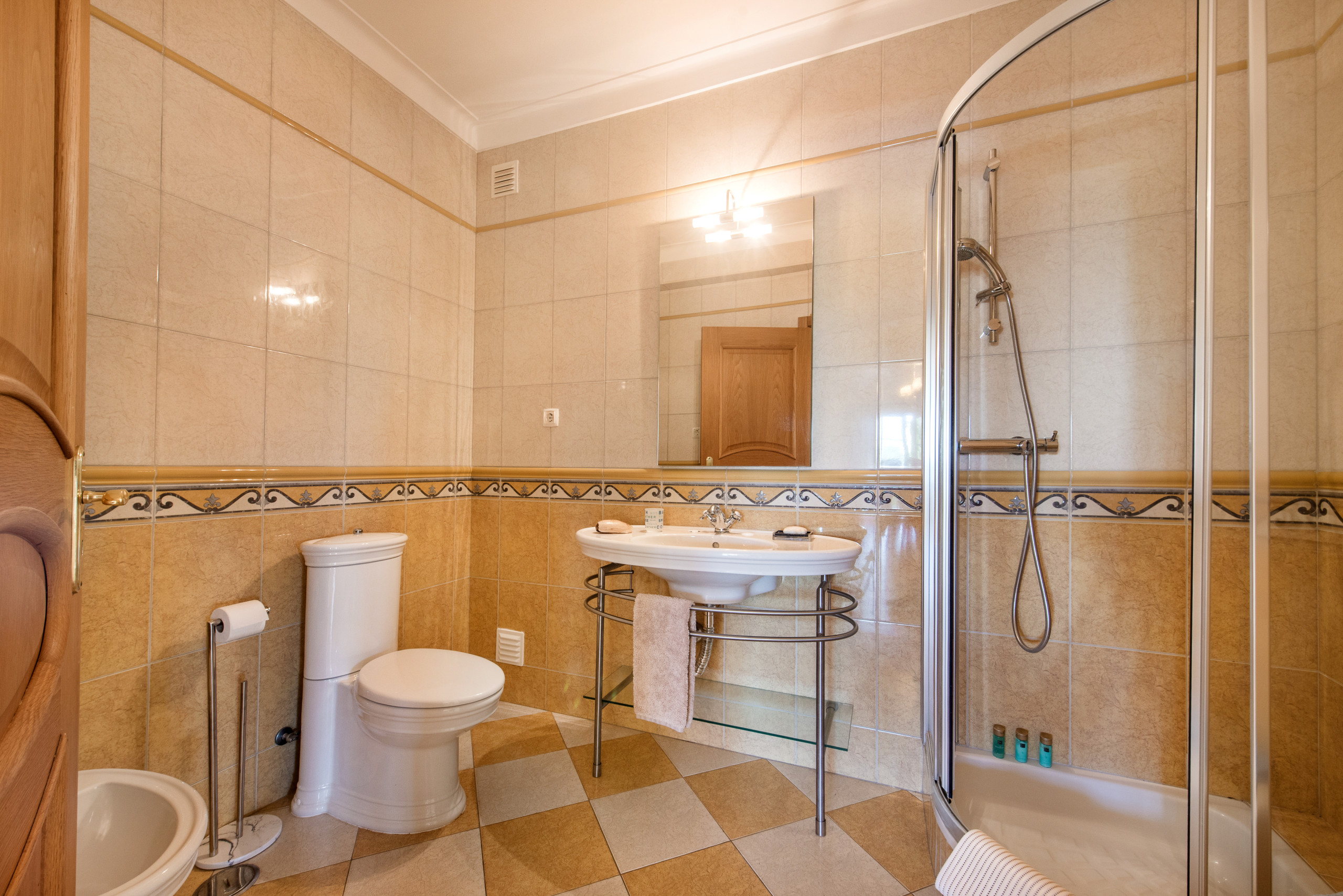 These bedrooms share a good sized bathroom with separate shower and a further shower room with bidet.