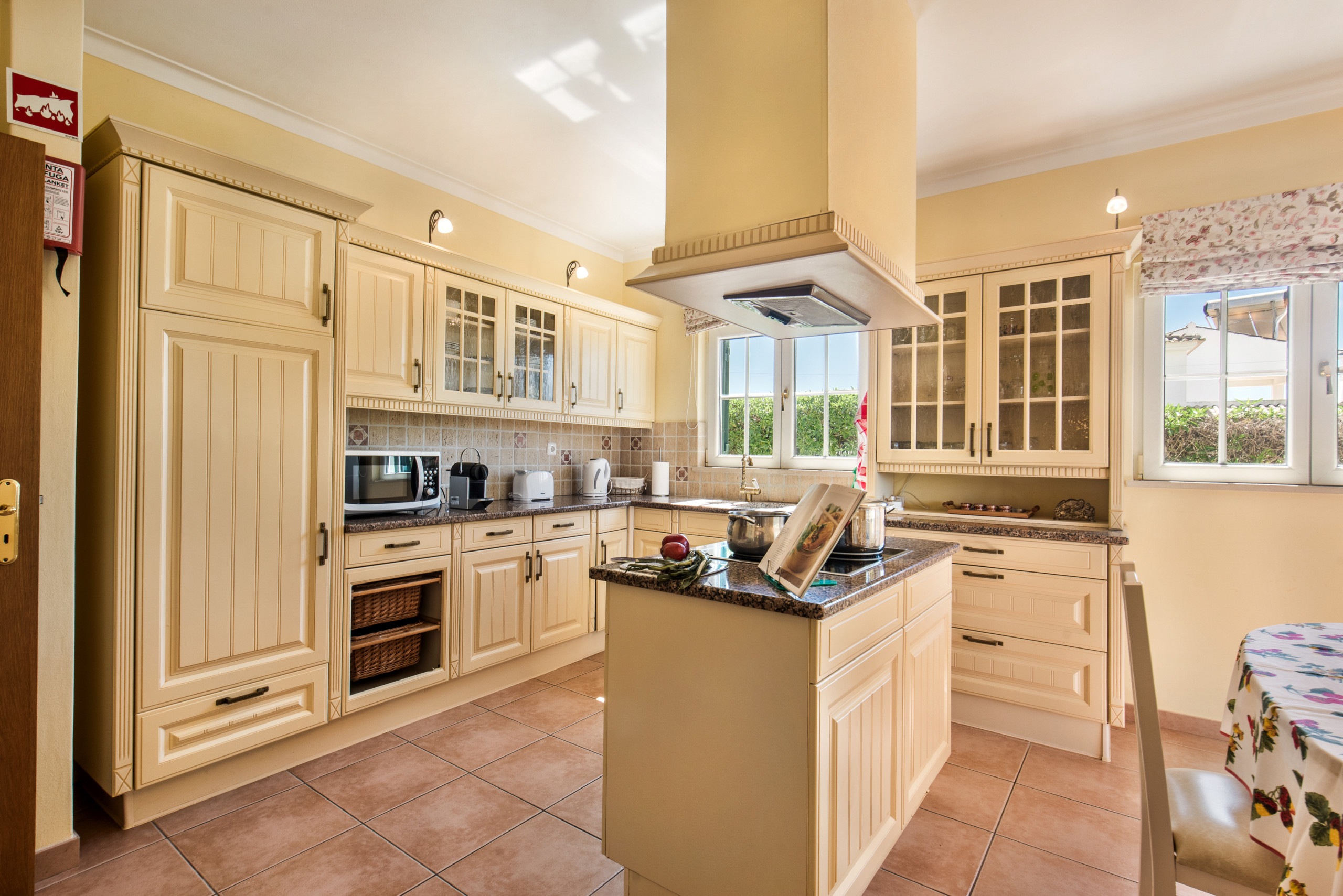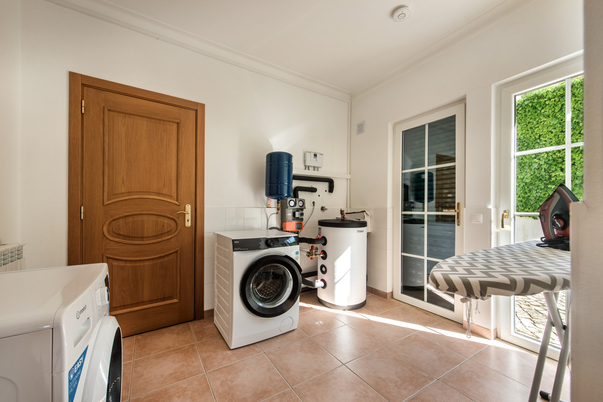 Upon entering the villa into the hallway there is the well equipped kitchen, access from the kitchen leads into a small outside laundry area equipped with a washing machine and dryer.