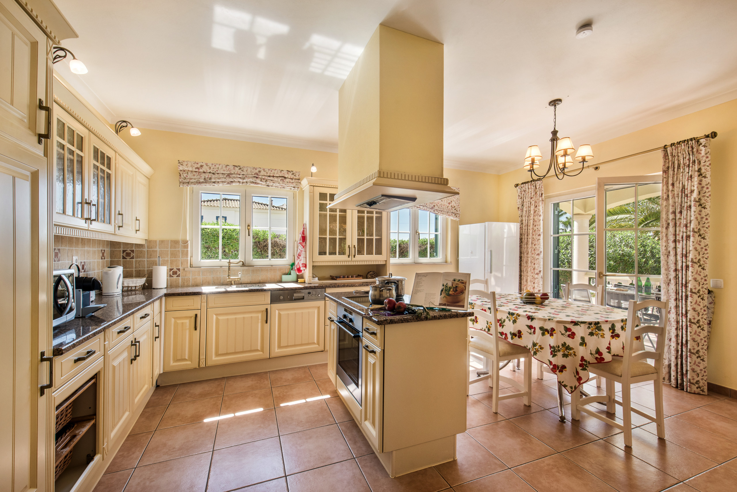 The fully fitted country style kitchen has a central island unit, granite worktops and is well equipped. There is a separate utility room with washing machine and direct outside access.